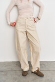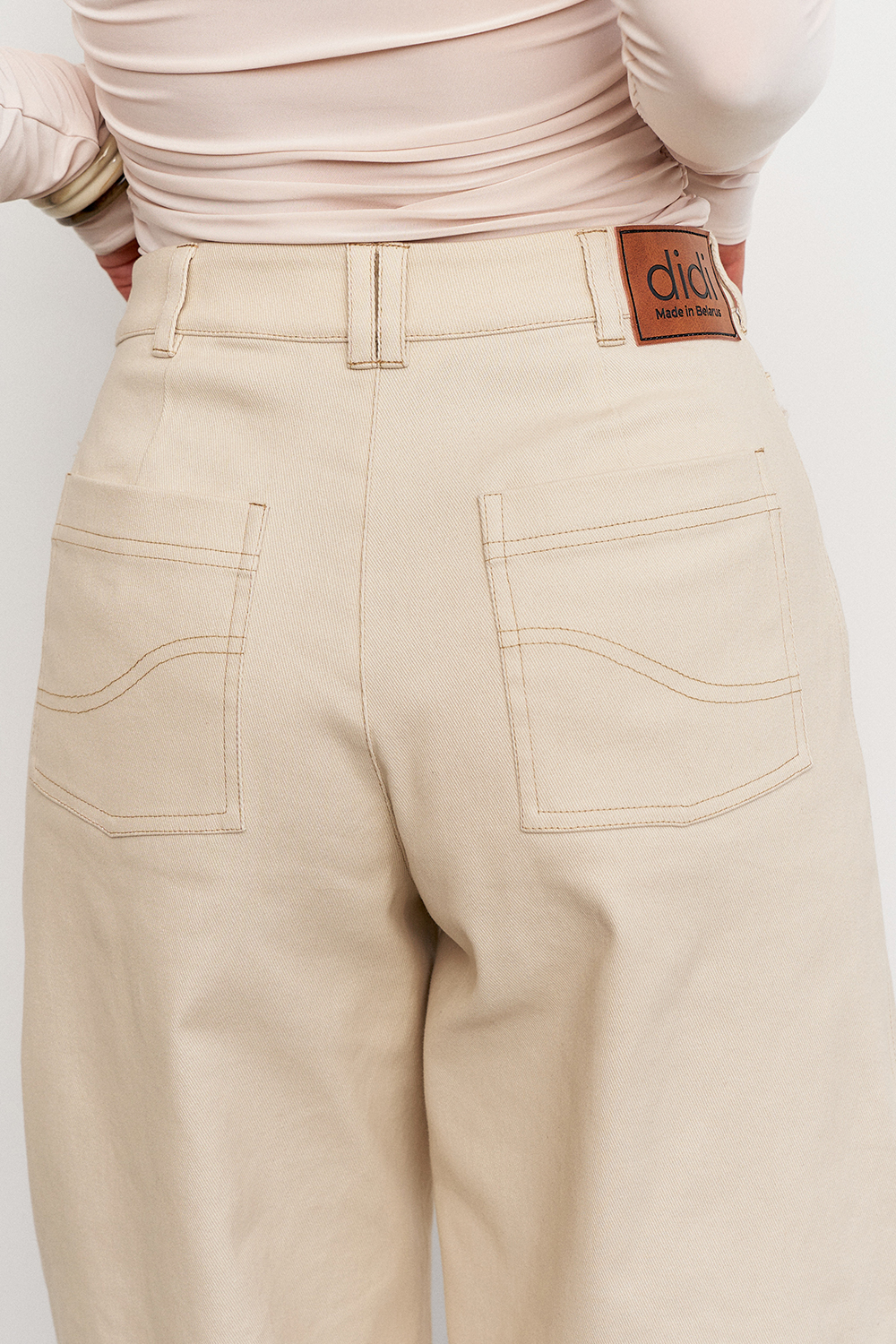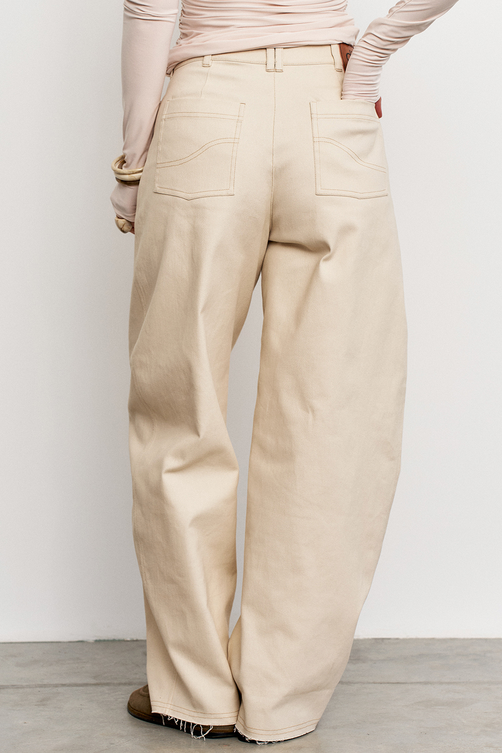 Джинсы актуальной О-формы с клиньями, имеющие акцентные детали в виде необработанного края кармана и контрастных отстрочек. Станут отличным вариантом для повседневности или создания ваших акцентных образов.