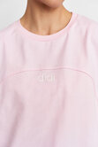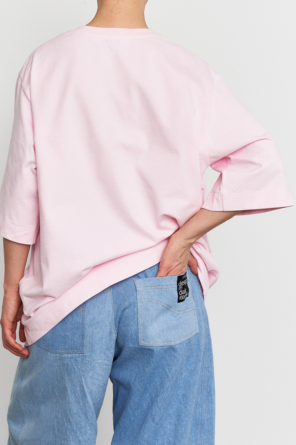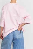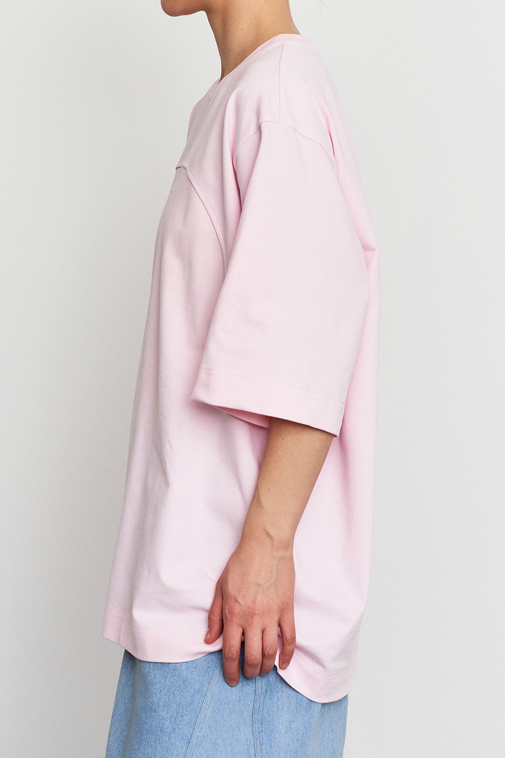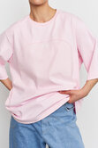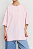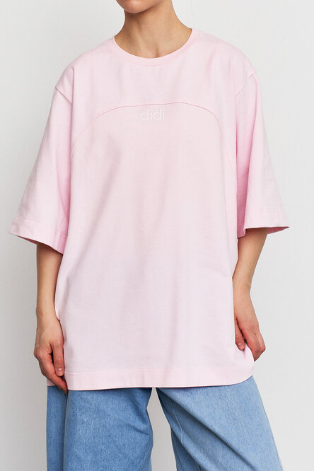 Объемная удлиненная футболка из плотного хлопка с акцентной линией спереди. Идеальный вариант для повседневных образов с джинсами, юбками или костюмом.
