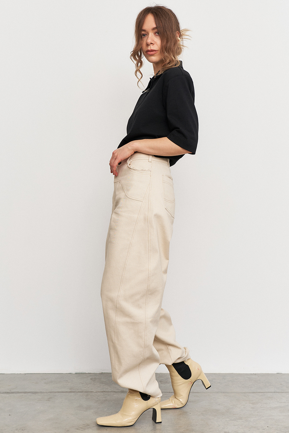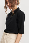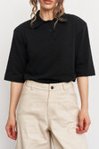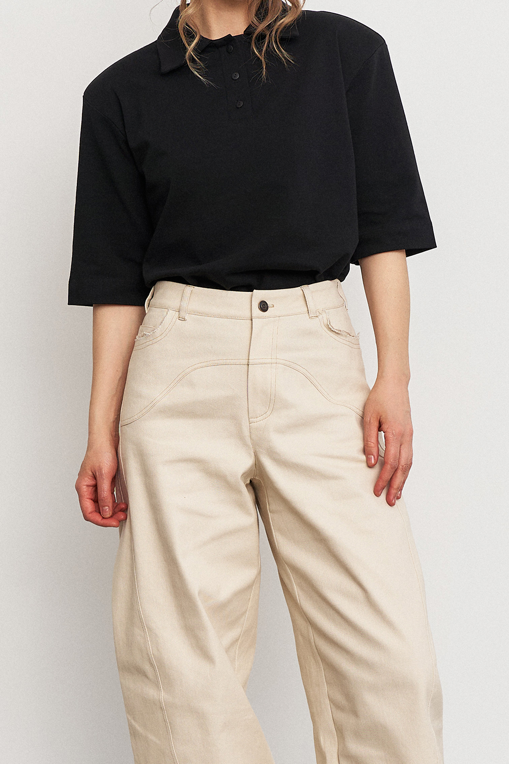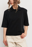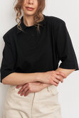 Поло с акцентной плечевой линией и зауженными рукавами - современный базовый силуэт, который добавляет образу выразительности и легкой спортивной эстетики.