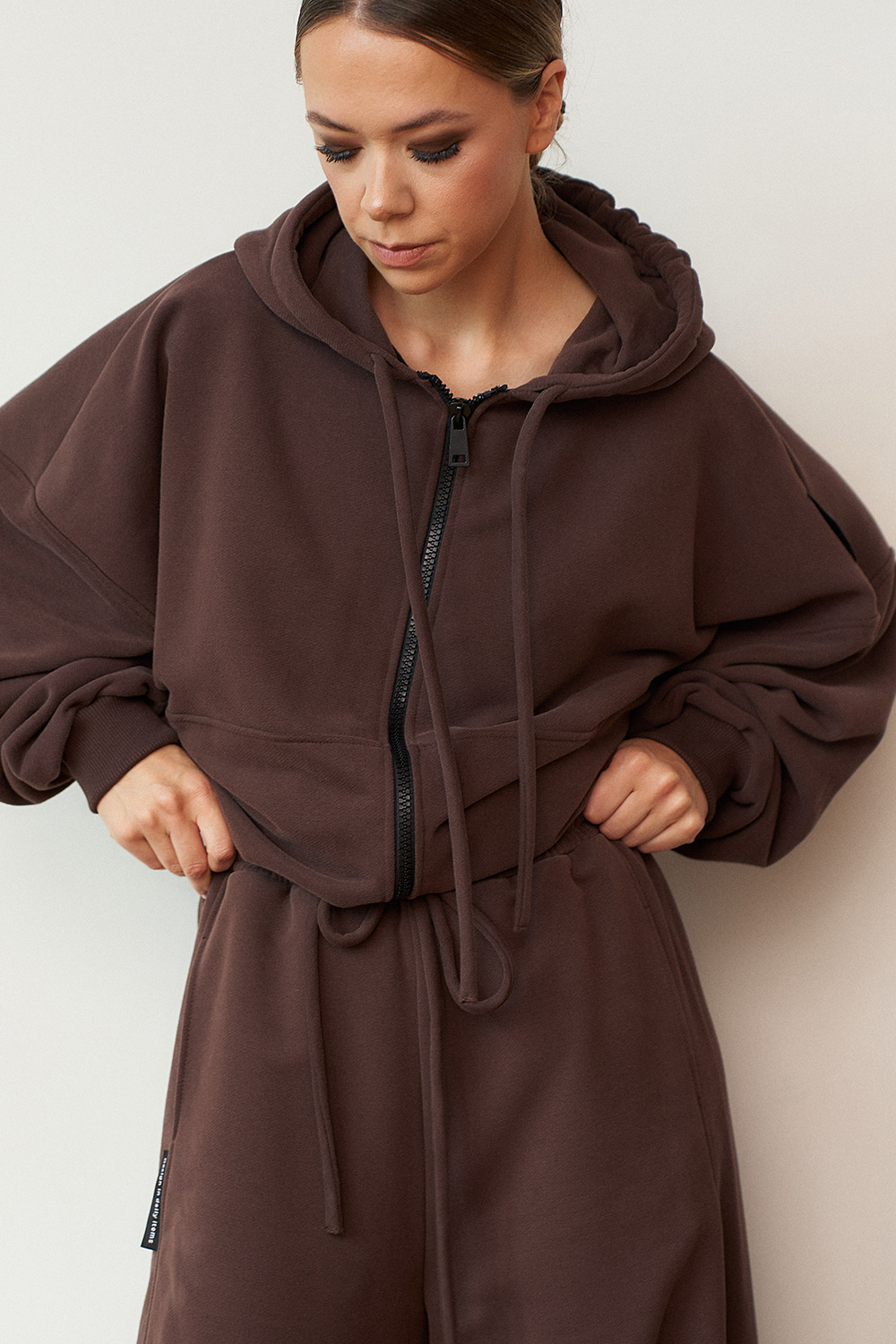 Толстовка свободного кроя с замком, объемным капюшоном и плотной резинкой по низу, что позволяет ее делать длиннее или короче. Выполнена из турецкого футера 3х нитки качества Пенье.