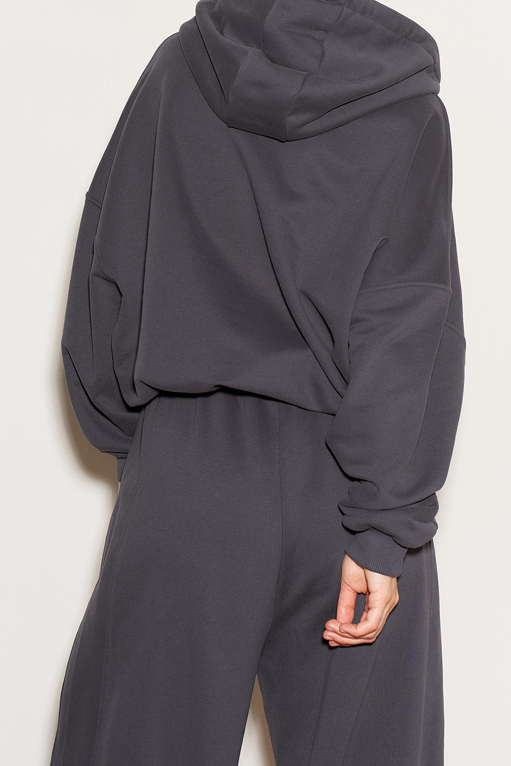 Толстовка свободного кроя с замком, объемным капюшоном и плотной резинкой по низу, что позволяет ее делать длиннее или короче. Выполнена из турецкого футера 3х нитки качества Пенье.